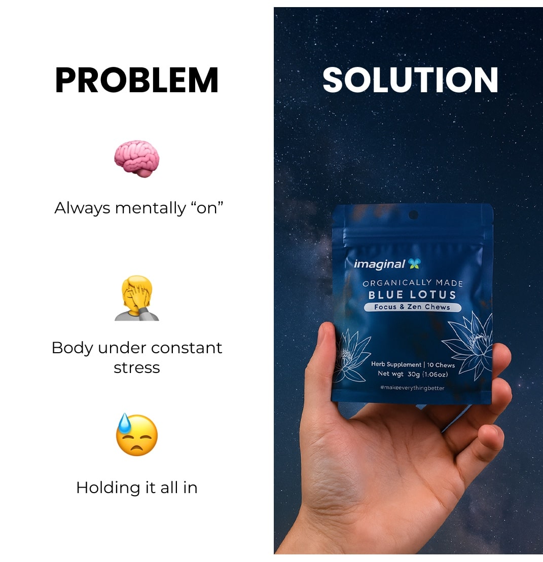 Feel the stress melt away with each chew. Our Blue Lotus Extract supports a fast-acting calm, helping you unwind and enjoy a peaceful moment in any situation.